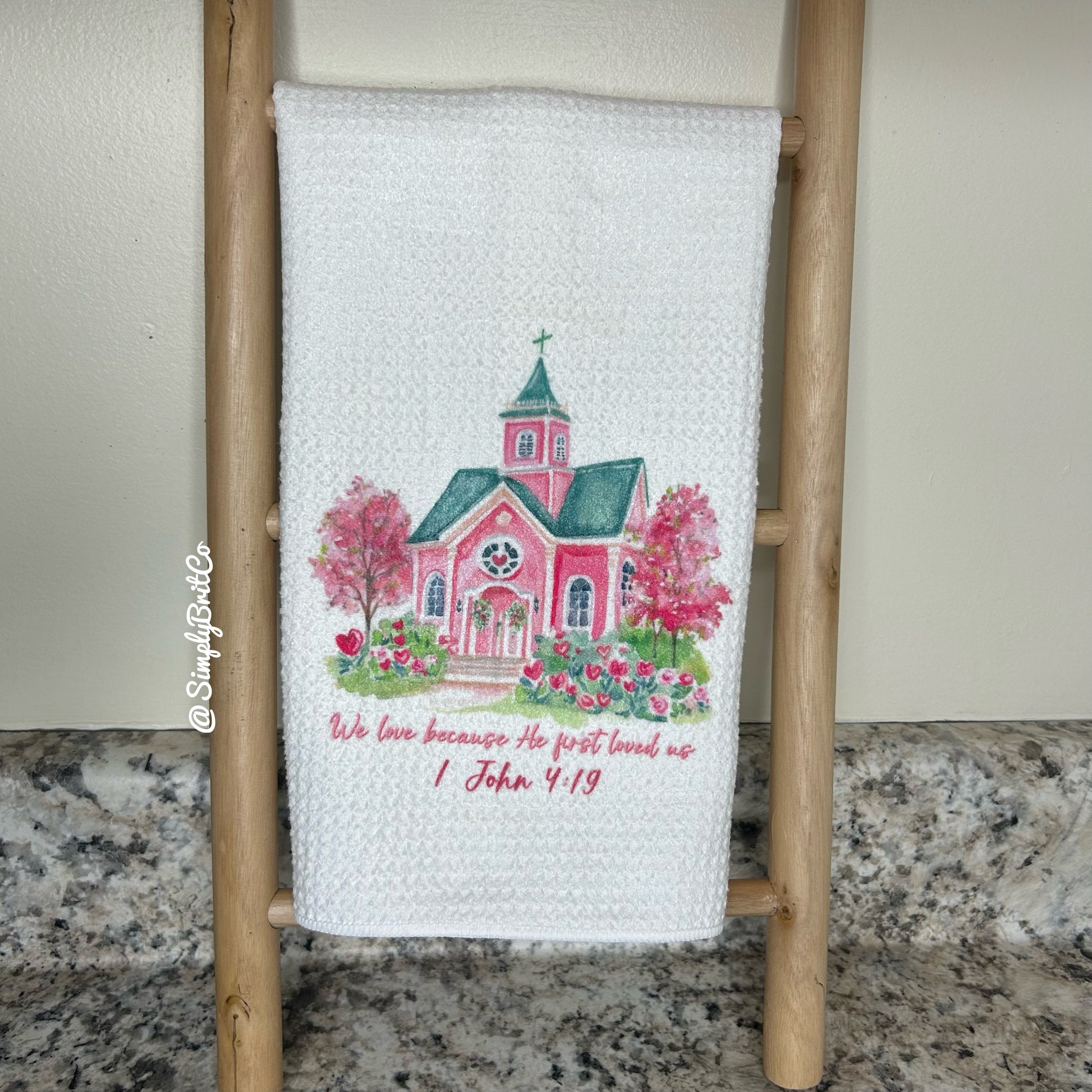We Love Because He First Loved Us Kitchen Towel , Church Towel