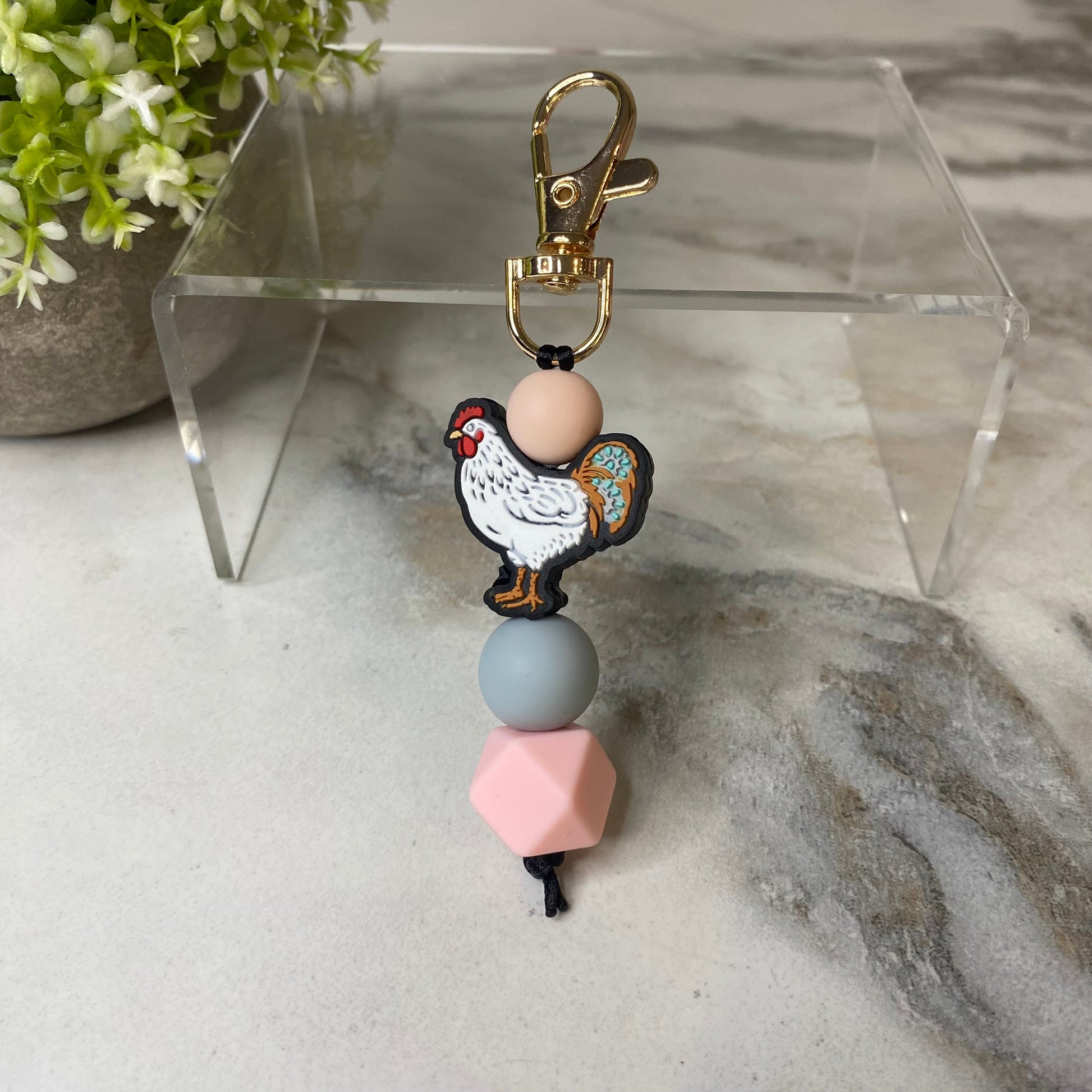 Keychain - Silicone Bead - Chicken - Pink