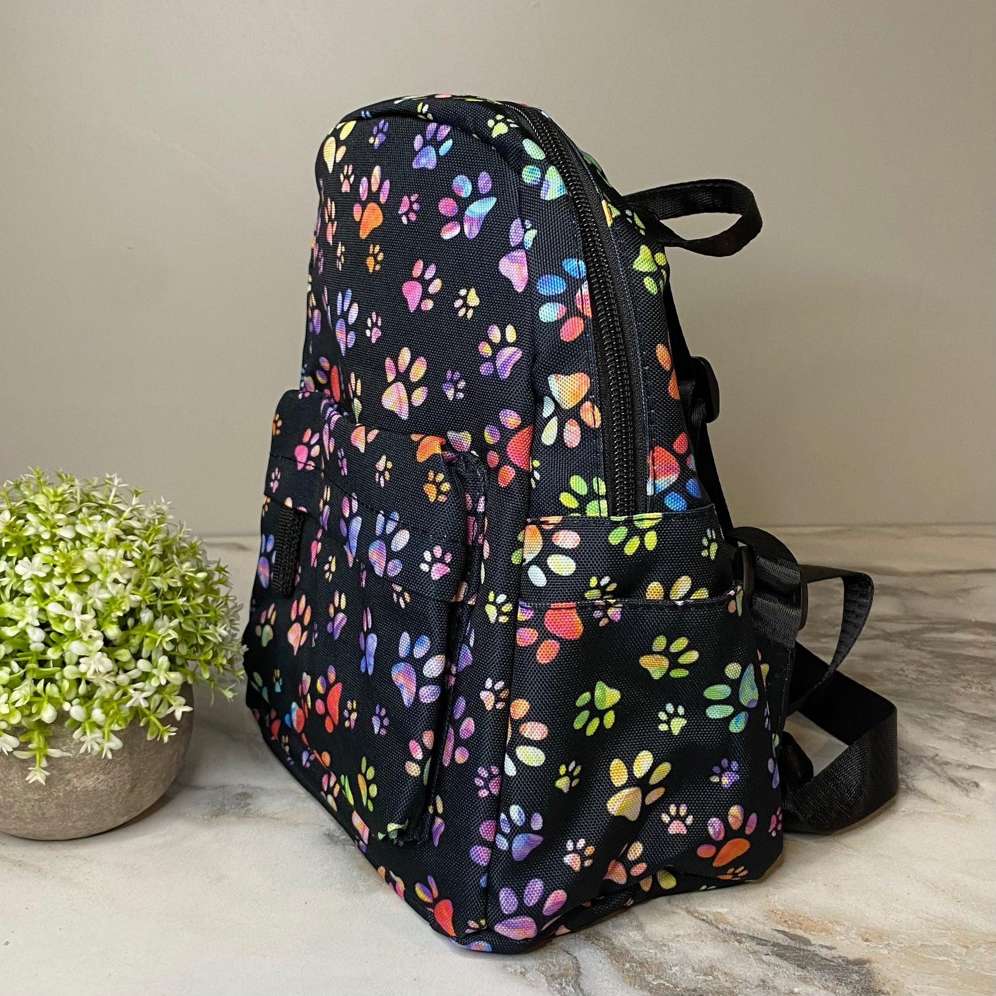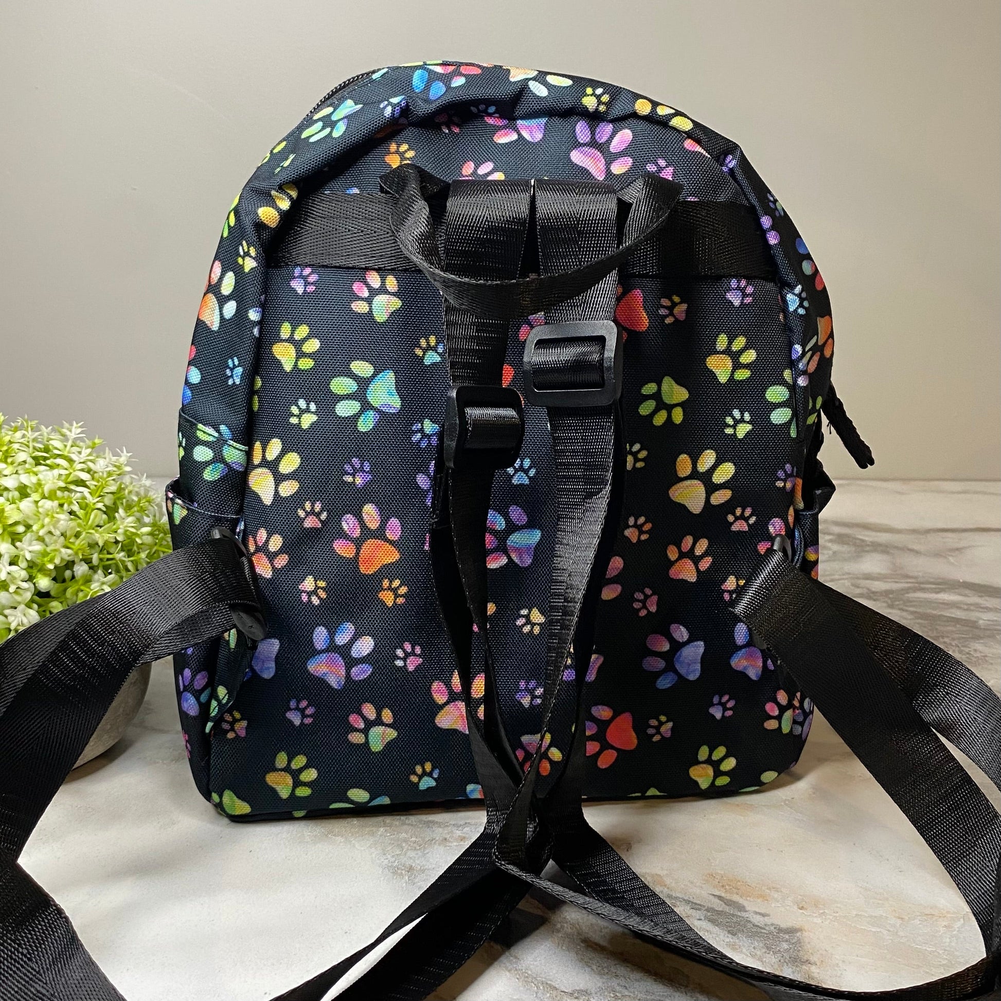 Mini Backpack - Black Rainbow Paw