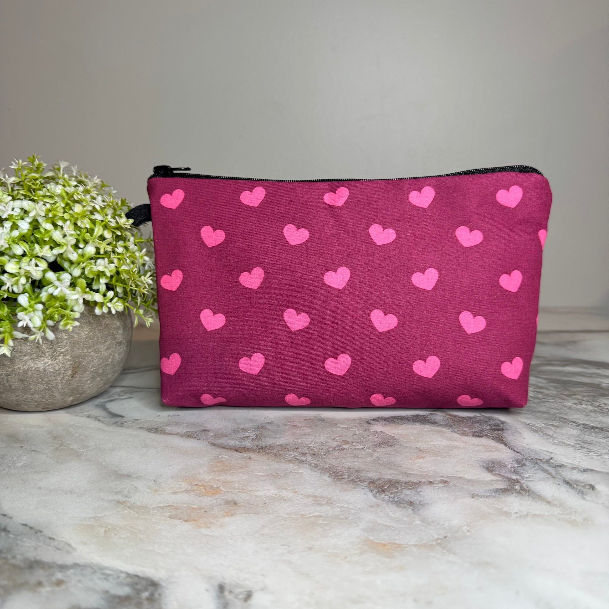 Pouch - Maroon Dark Pink Hearts