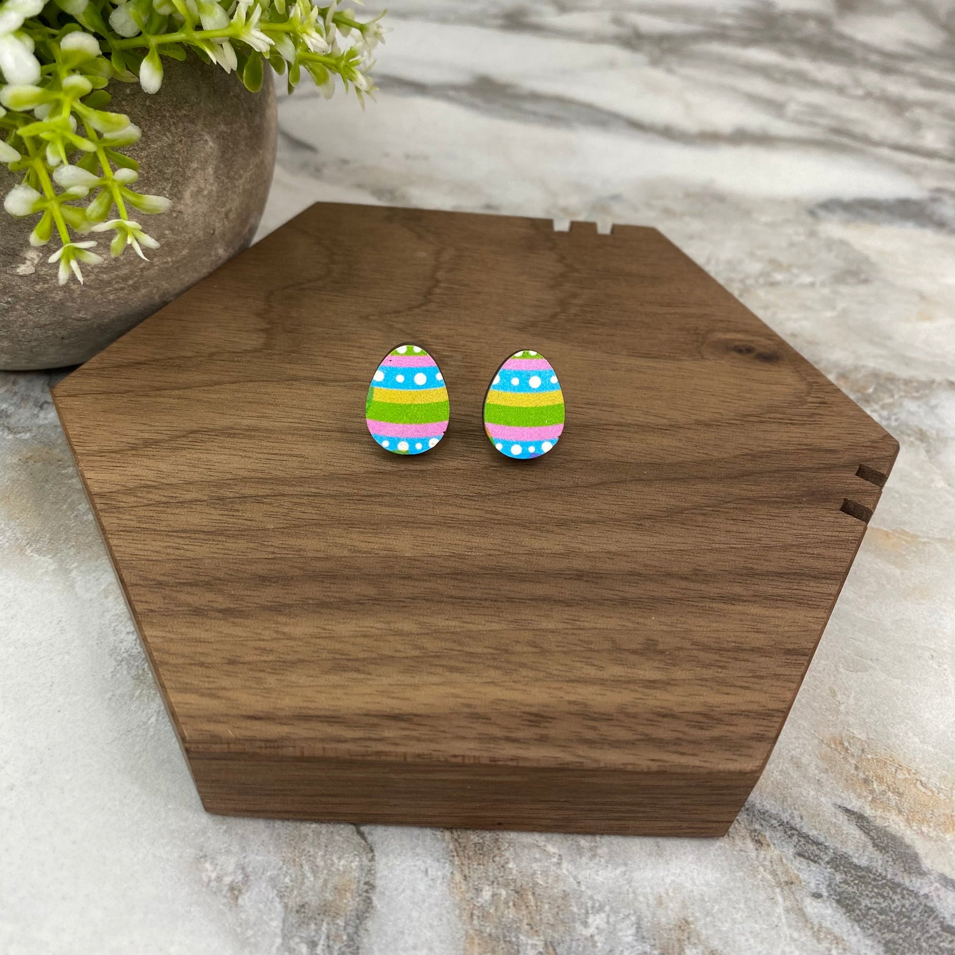 Wooden Stud Earrings - Easter Egg Design - #7